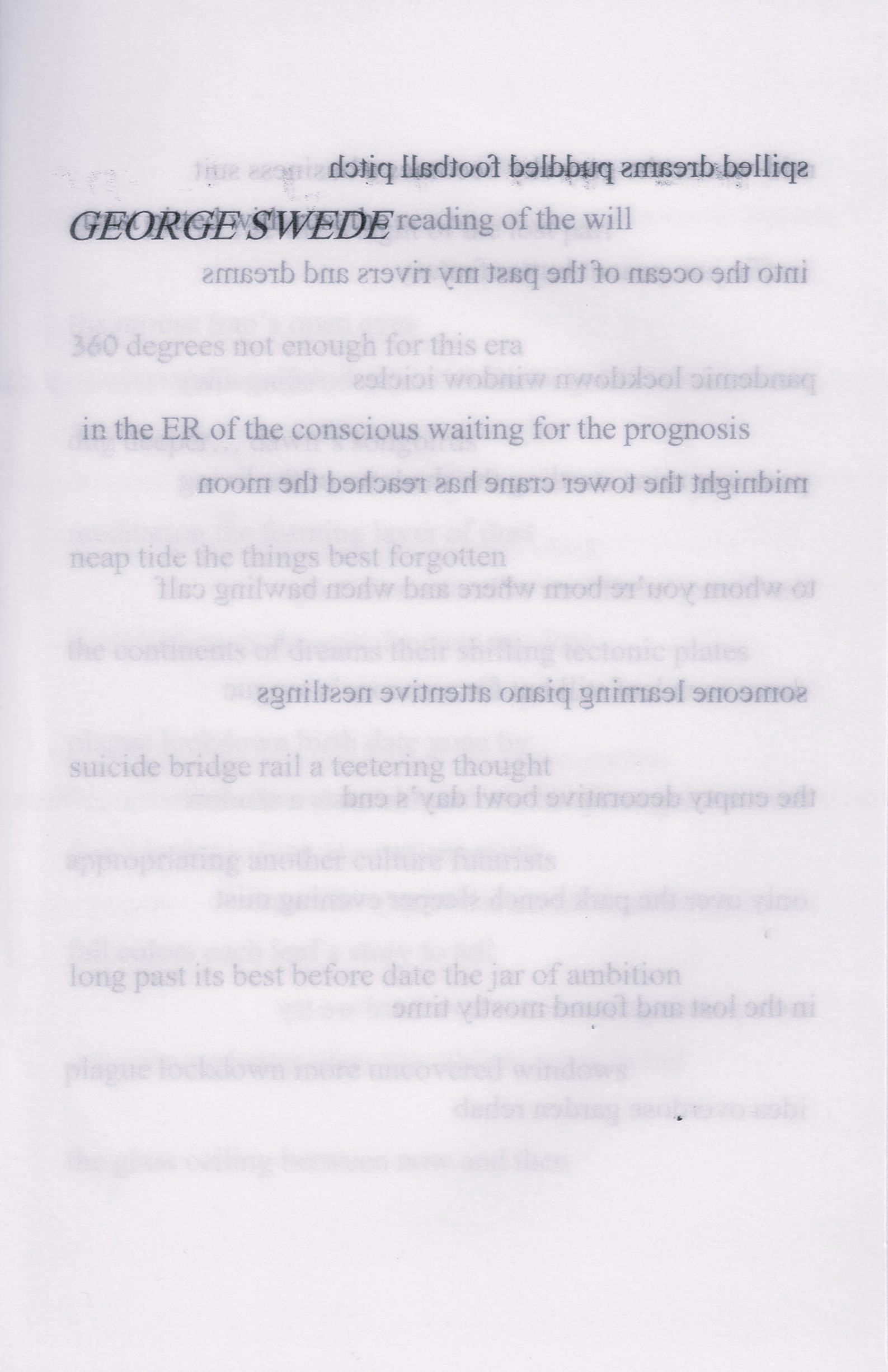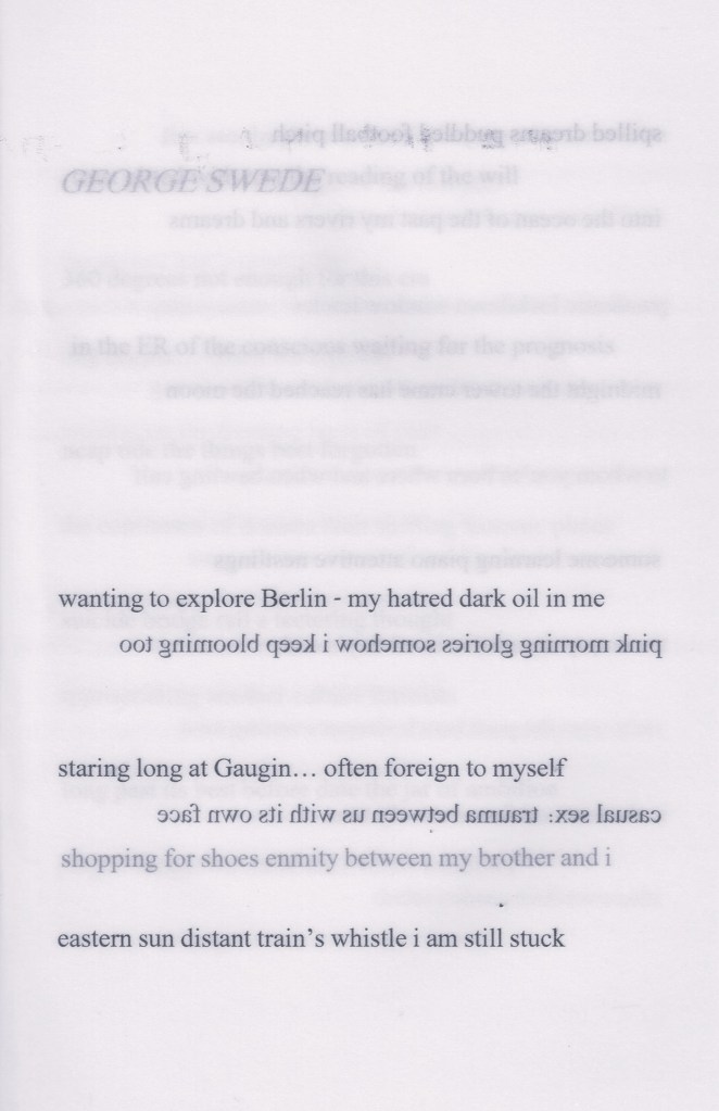 Featuring haiku by Victor Ortiz, Orrin PreJean, and George Swede.
